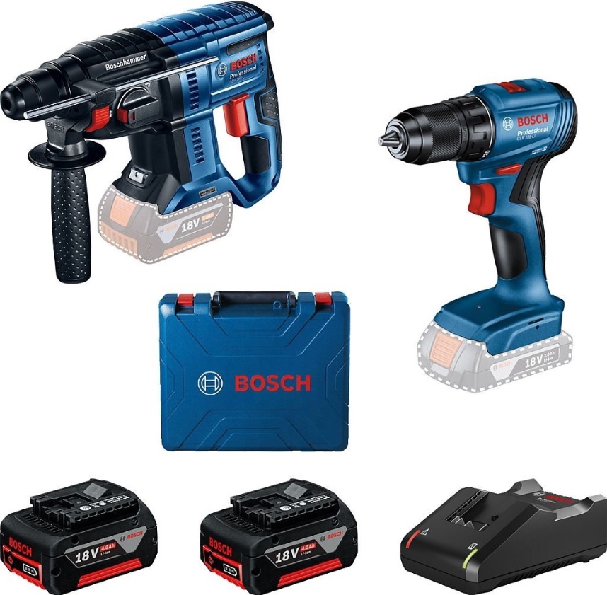 BOSCH 2 Lİ SET GBH 180 LI + GSR 185 LI + 2 x 4 Ah akü + GAL 18V40 + 2 L box çanta