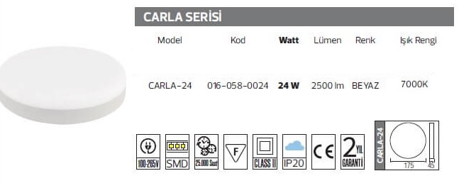 HOROZ CARLA-24 24W 7000K beyaz ışık LED ARMATÜR