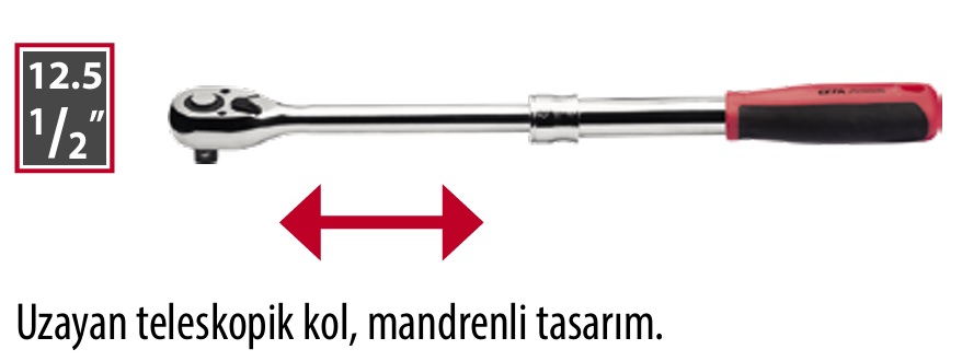Ceta Form 1/2” Düğmeli Cırcır Kolu (Uzatmalı)