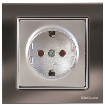 Mutlusan Elitra Plus Seri Cam Çerçeve Gümüş Topraklı Priz Çocuk Korumalı
