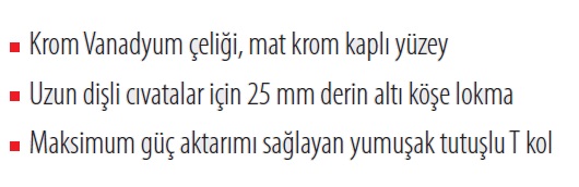Uzun civatalar için, 25 mm derin 6 köşe lokmalı, Krom Vanadyum çeliği, mat krom kaplı yüzey, çift bileşenli ergonamik sap