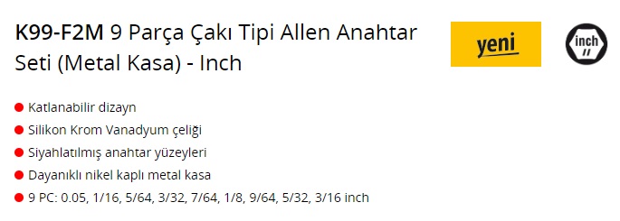 Ceta Form K99-F2M 9 Parça Çakı Tipi Allen Anahtar Seti Metal Kasa - Inch