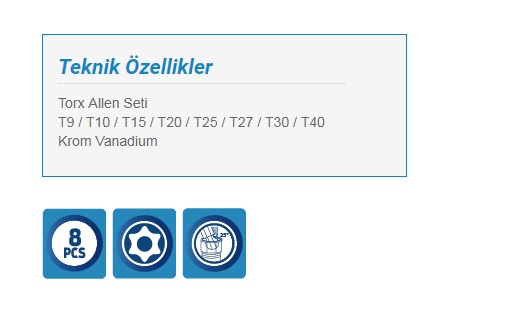 Ford FHT-H-0021 8 Parça Çakı Tipi Torx Allen Seti