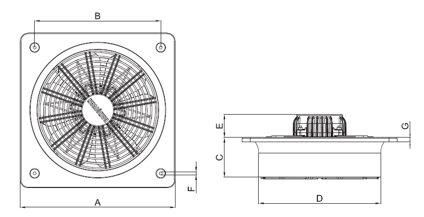 MALZEME : Gövdesi Elektrostatik toz boyalı DKP sactan kare kasalı olarak imal edilir. Pervane içbükey sistemi ile DKP sactanimal edillir.
