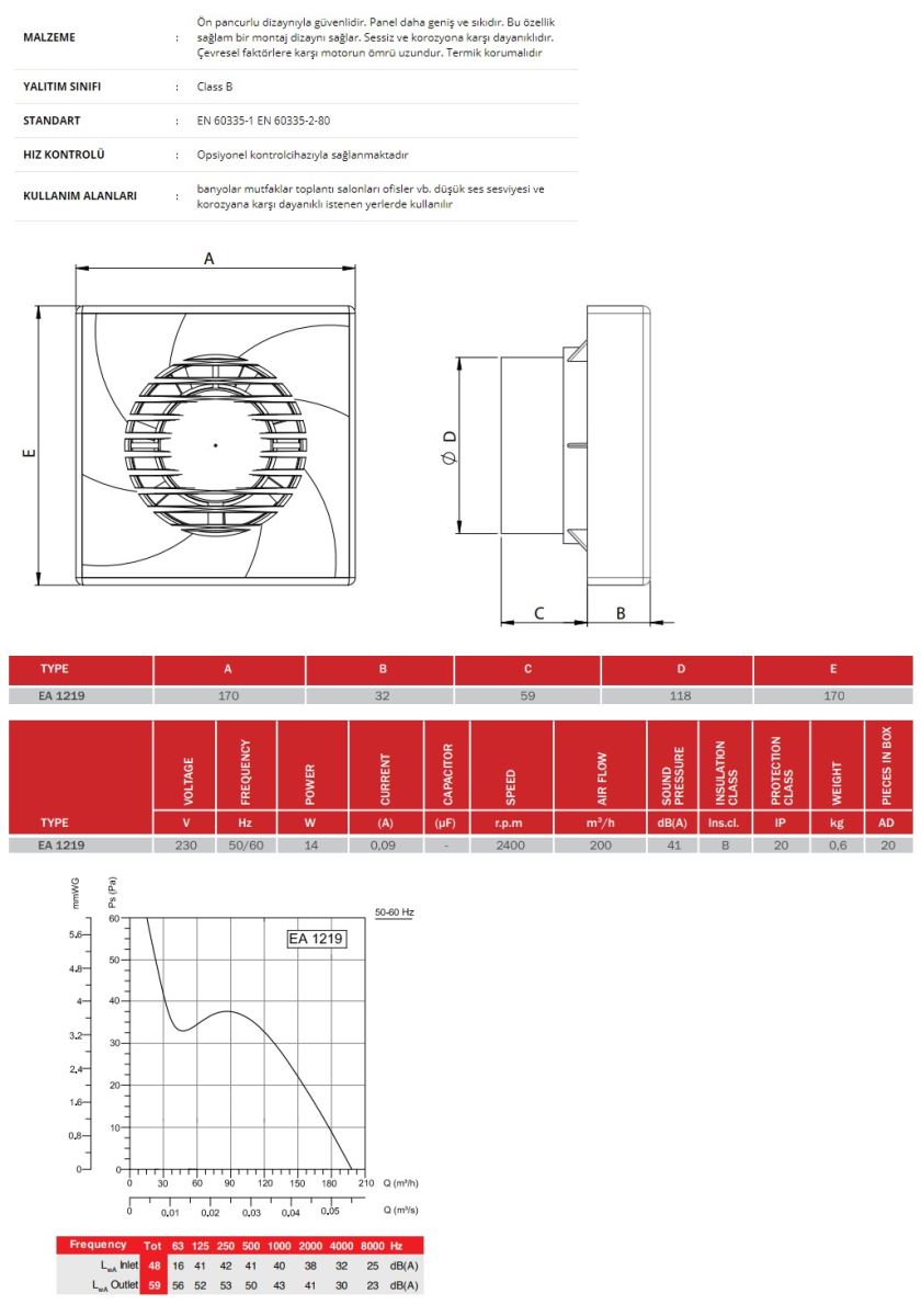 Bahçıvan EA1219 Plastik Banyo & Tuvalet Aspiratörü Standart
