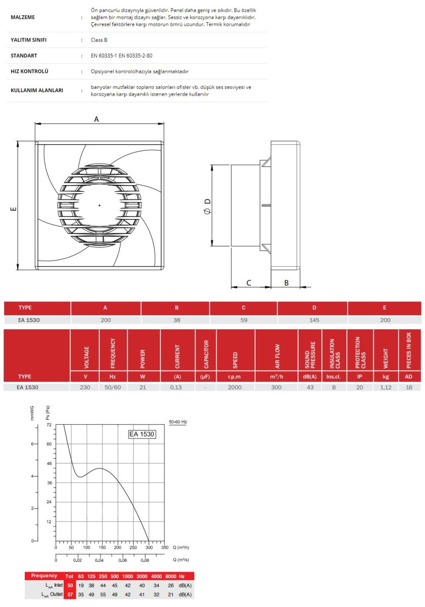 Bahçıvan EA1530 Plastik Banyo & Tuvalet Aspiratörü Standart