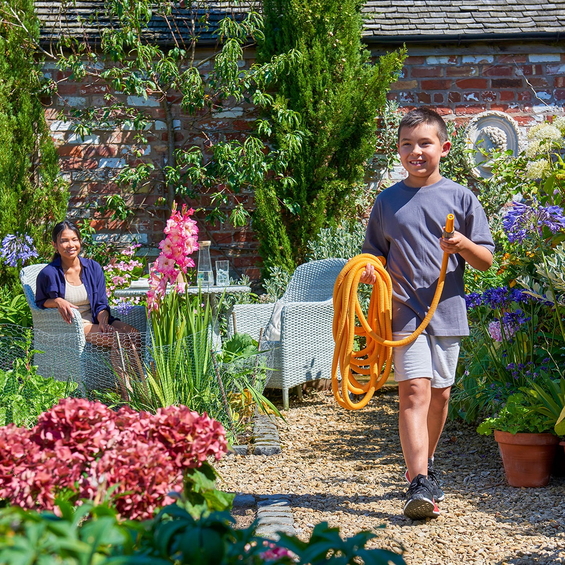 • Kullanımdan sonra musluk kapatılıp suyun hortum ucundan boşalmasına müsade edilir, böylece hortum kendi ölçüsüne geri döner.