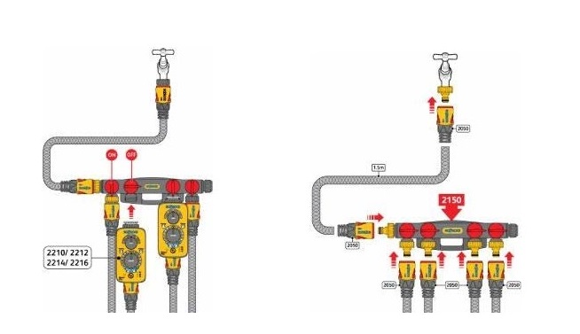 • 1/2" - 3/4” veya 1” musluklara takılarak aynı anda dört farklı yöne su dağıtımını sağlar.