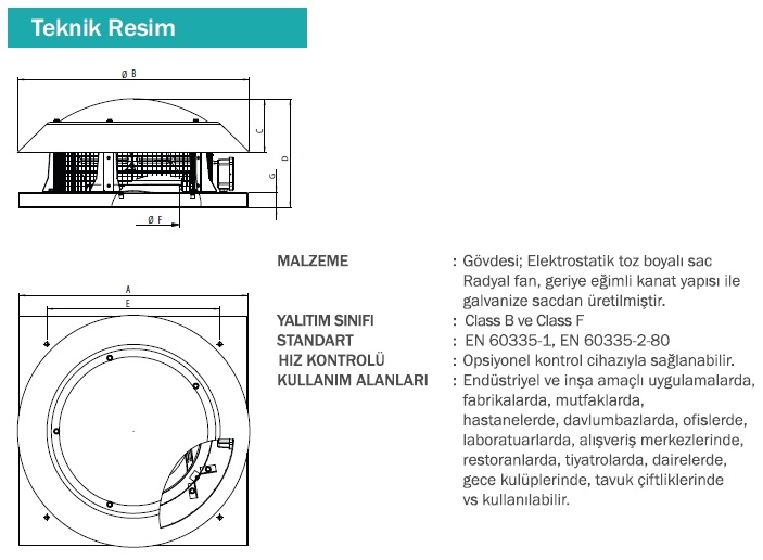 Bahçıvan BRF 225 Yatay Atışlı Çatı Fanı
