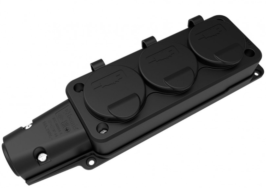 Üçlü Grup Priz Ürün Kodu : BK1-1402-3613 IP Sınıfı : IP54 Volt : 220V-250V Kutup : 2P+E Gövde Malzemesi : Kauçuk İletken Malzemesi : MS 58