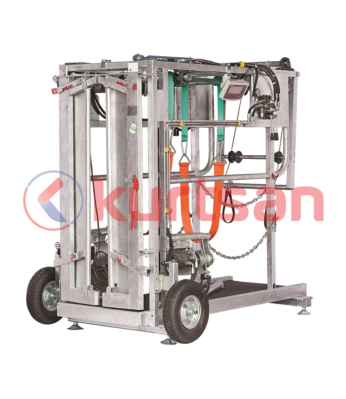 - Kaldırma mekanizması ile hayvanın ön ve arka ayaklarının bakımının yapılabilmesi için hayvanı kaldırır.