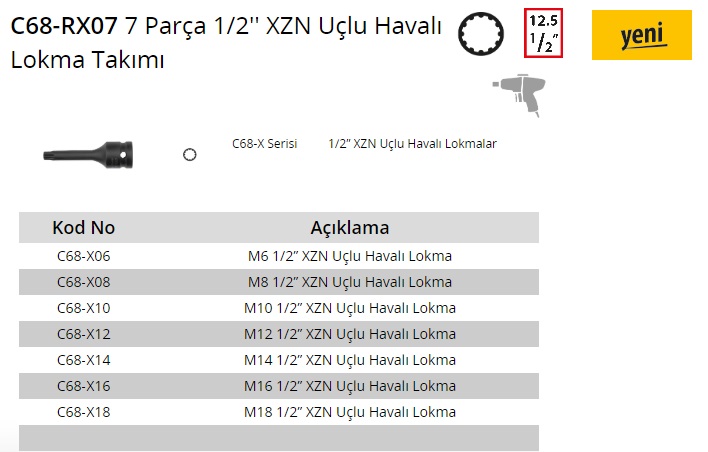 Ceta Form C68-RX07 7 Parça 1/2 XZN Uçlu Havalı Lokma Takımı