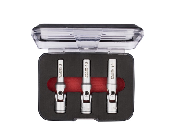 Tüm popüler kızdırma bujilerinin sökülme ve takılmasına uygun, 72 mm derinlikte, özel mafsallı lokmalar