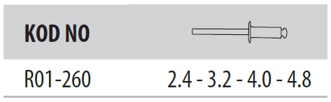 Alüminyum, çelik ve paslanmaz çelik perçinler için, değiştirilebilir perçin kafası, çelik saplı alüminyum gövde
