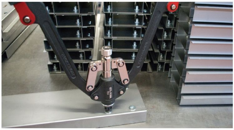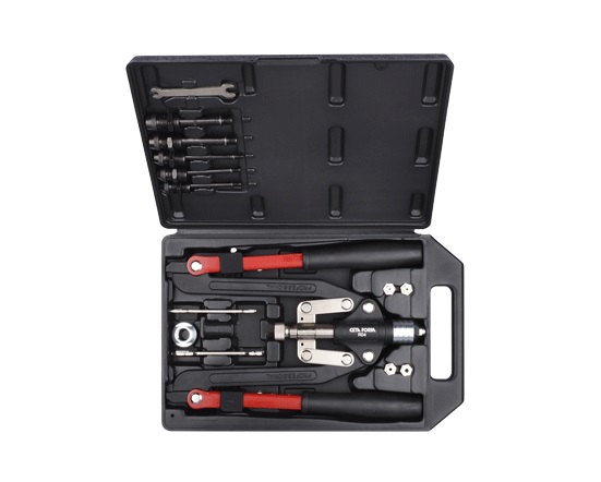 Somun ve pop perçinler için, normal perçin penslerine göre daha kuvvetli, katlanabilir kollu perçin pensli komple set