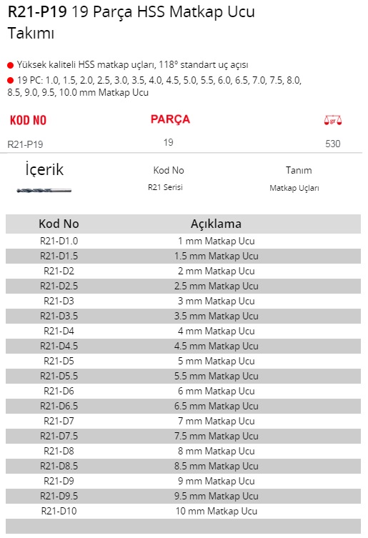 Ceta Form R21-P19 19 Parça HSS Matkap Ucu Takımı
