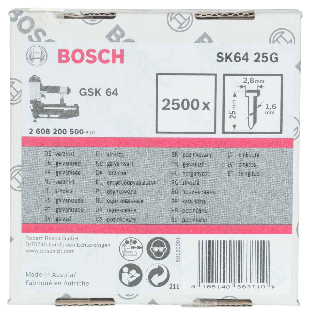 Bosch GSK 64 Çivisi 25 mm 2500 ' li Galvanizli