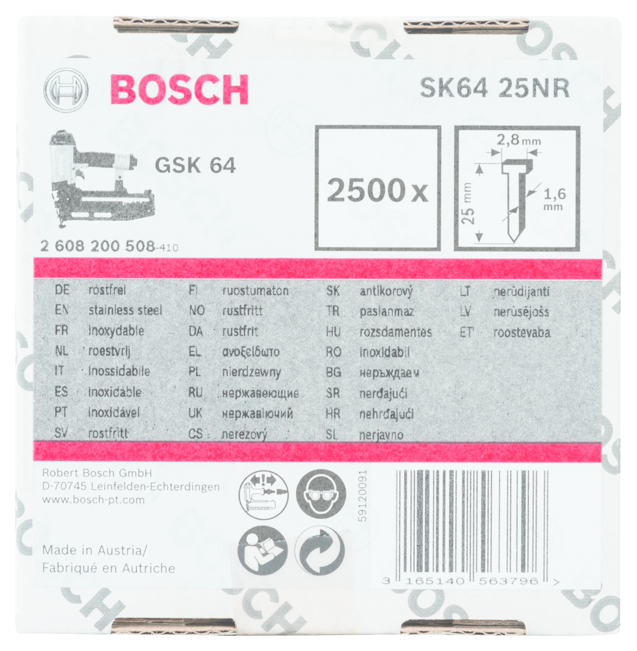 Bosch GSK 64 Çivisi 25 mm 2500 ' li Paslanmaz
