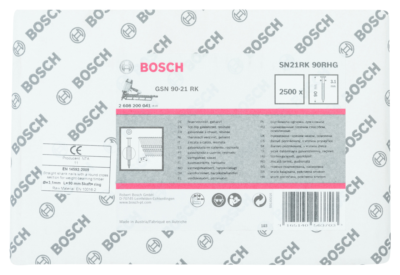 Bosch GSN 90-21 DK Çivi 90 mm 2500 ' lü Yivli Galvanizli