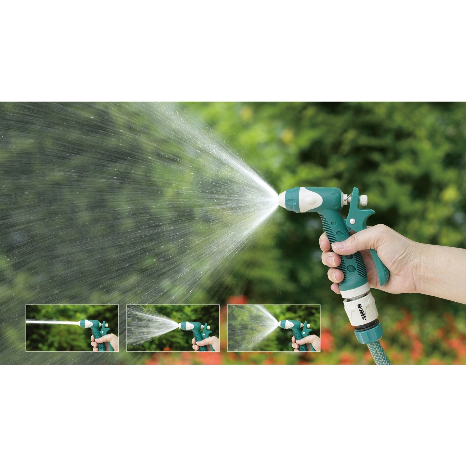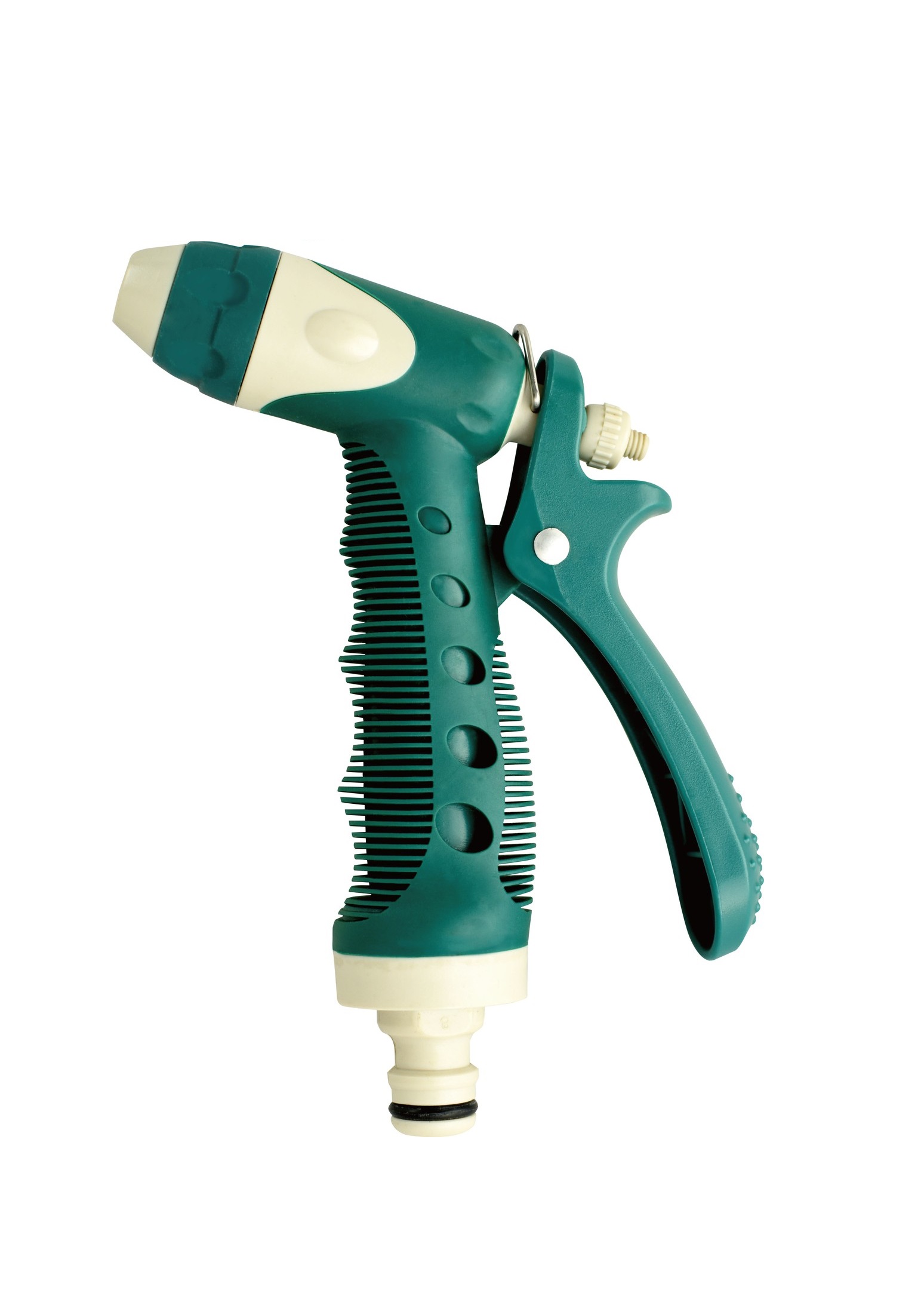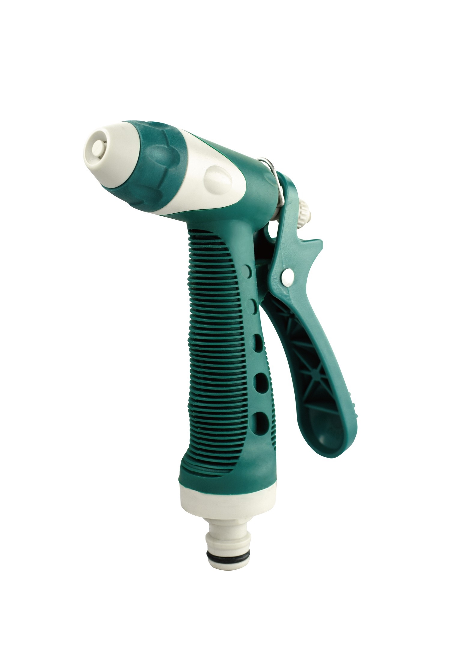 • Atım ayarlı, yumuşak tutamaçlı sivri uçlu plastik hortum tabancası.