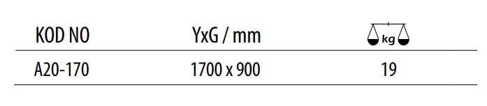 ► A20-170 modeli A17 ve A17(S) çalışma tezgahı ile uyumludur.