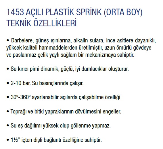 1453 AÇILI PLASTİK SPRİNK (ORTA BOY) YAĞMURLAMA BAŞLIĞI