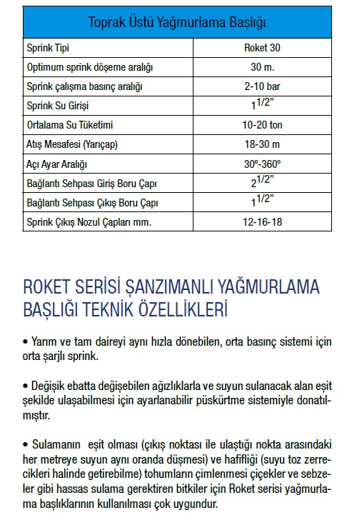 METSAN 3403 ROKET 30 BÜYÜK BOY ŞANZIMANLI YAĞMURLAMA BAŞLIĞI