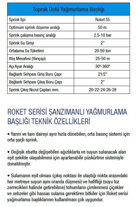 ROKET 55 ŞANZIMANLI YAĞMURLAMA BAŞLIĞI